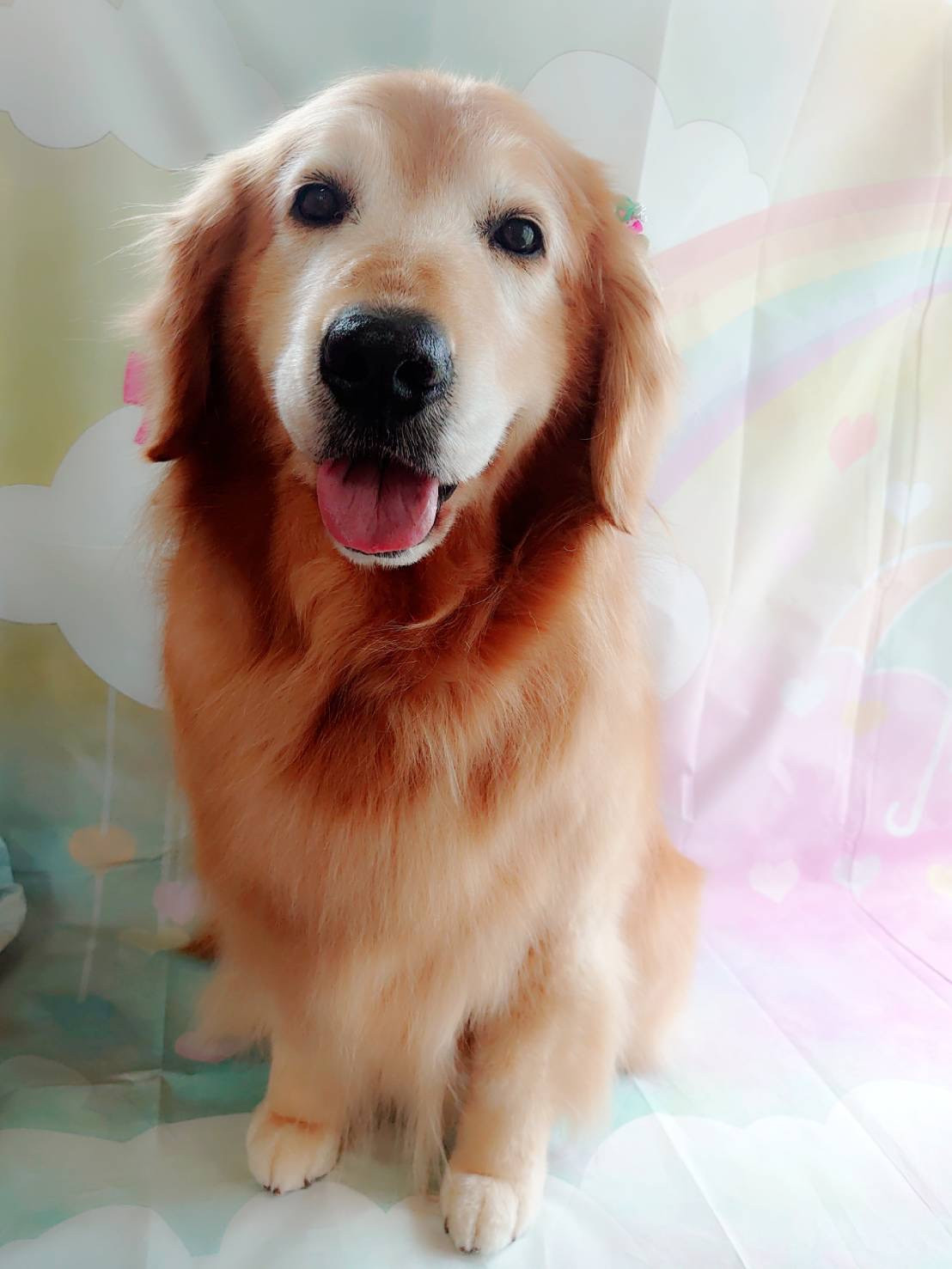 シャンプーしてサラサラふわふわに仕上がって今日はお耳にてるてる坊主を付けて可愛く仕上がりました