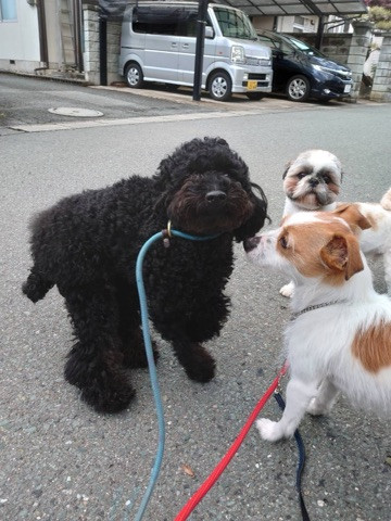 夕方はお天気が回復して道路も乾いてきたので朝方一緒に遊んだワンちゃん達と一緒にお散歩に出発