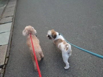 今日は1日雲行きが怪しく日中雨もパラパラ降ったりしましたが、お散歩の時間には雨も止みルンルンお散歩に行くことが出来ました