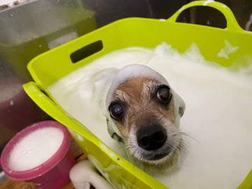 今日は導入仕立てのシャンプーマシンで泡泡モコモコお風呂に入りました