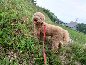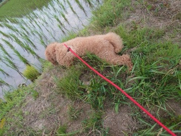 田んぼ道ではジャバジャバお水が田んぼへと入るのが気になるようで少し引け越しになりながら覗き込んでました