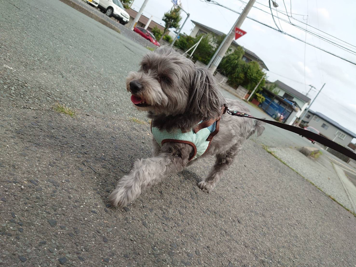 今朝は曇り空に少し風が吹いていてとても涼しい中お散歩に行くことができました