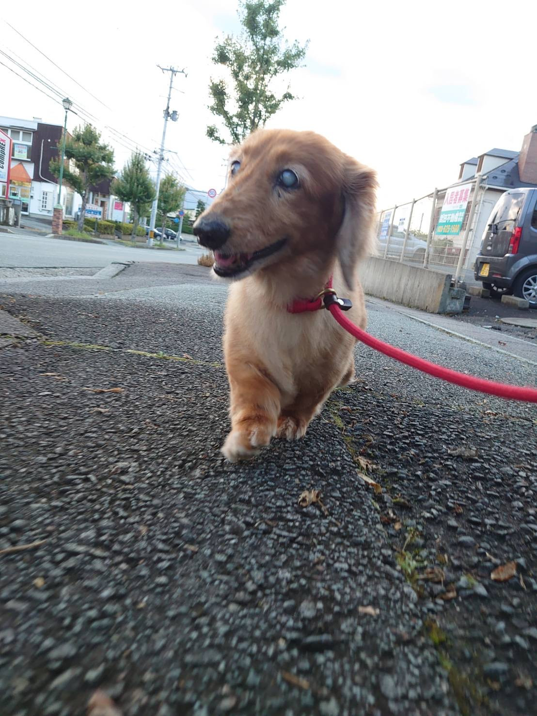 夕方に通り雨がザーッと降って、しばらく室内で他のワンちゃん達と交流しながら過ごしていましたが、雨も止み道路も乾いてきたのでお散歩に出発