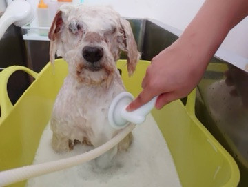 今日もルンルン張り切ってシャンプーコースのりゅうちゃん