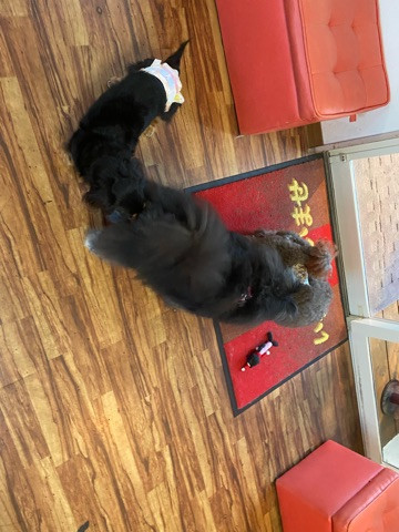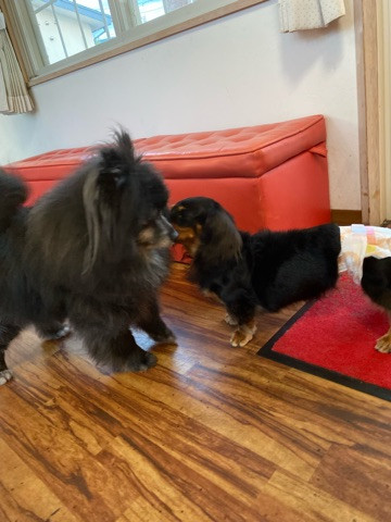 パパ達のお見送りをしてお部屋の準備をしている間他のワンちゃん達と交流会