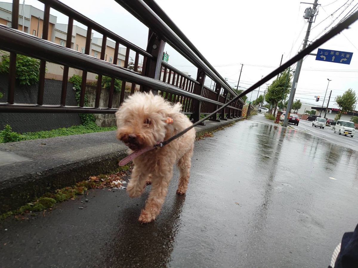 今朝はあいにくの雨に少し小走りでサッとお散歩へ出発
