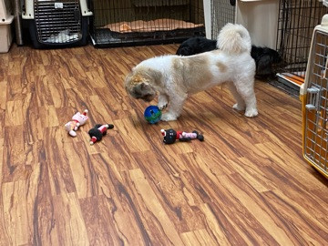 今日もあいにくの雨に他のワンちゃんと仲良くおもちゃ遊びして過ごしました