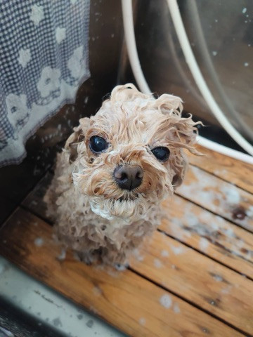 ふわふわだった毛もシャンプーでペッタンコになったね