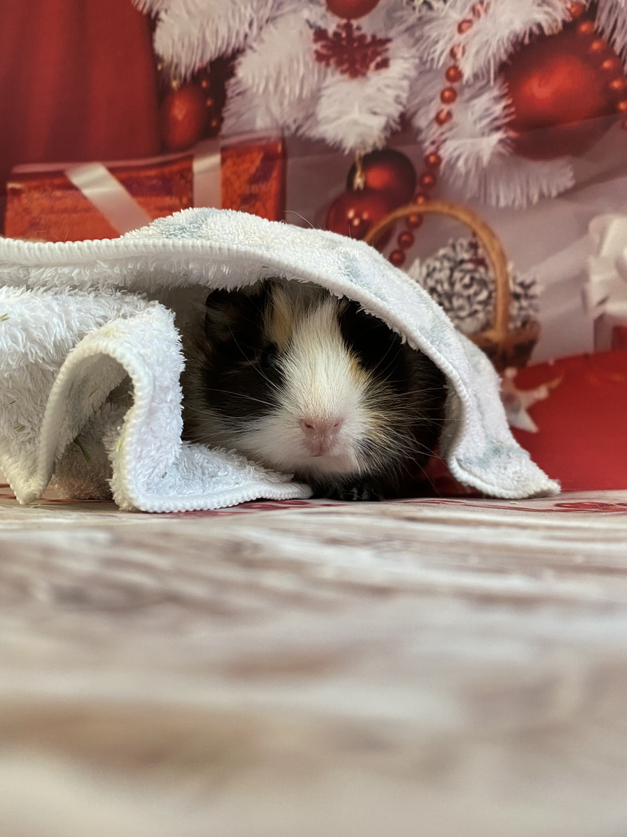隠れるところが無くなると落ち着かないようだったので今回はタオルに包まれながらハイチーズ