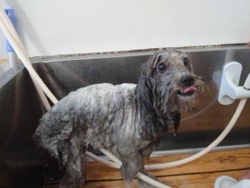 シャンプーしてペッタンコになったバロンちゃん