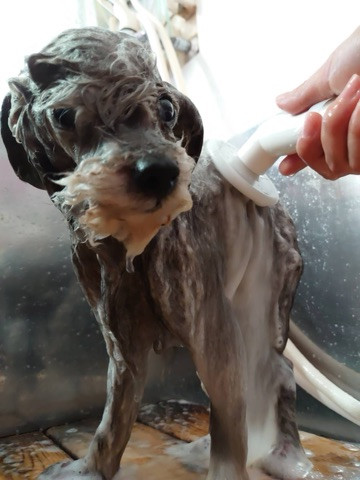 今日は先にブクブクお風呂に入って泡泡のシャワーでシャンプーしたよ
