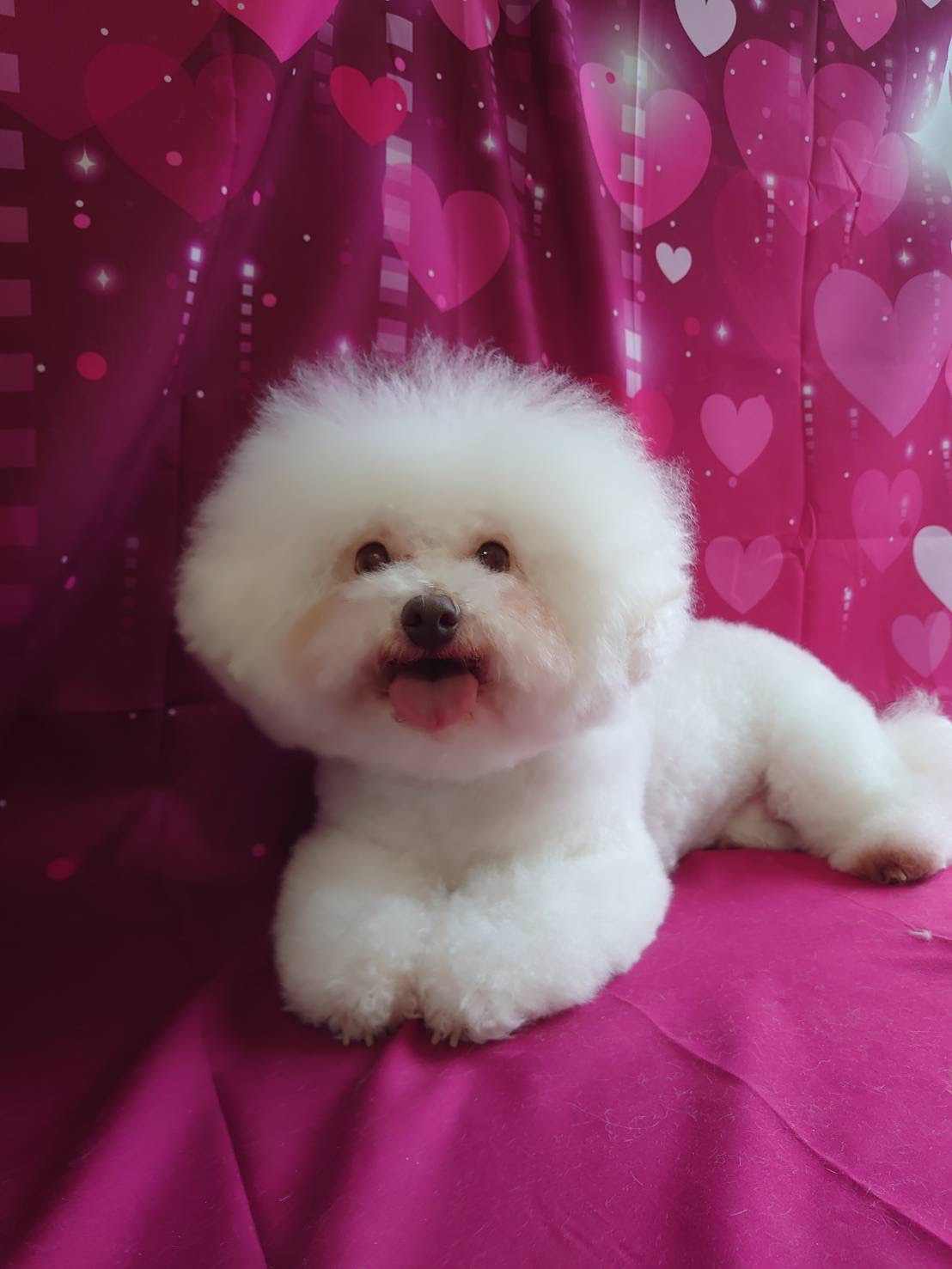少し目にかかる毛を整えて綿毛のようにふわっふわモコモコに仕上がりました