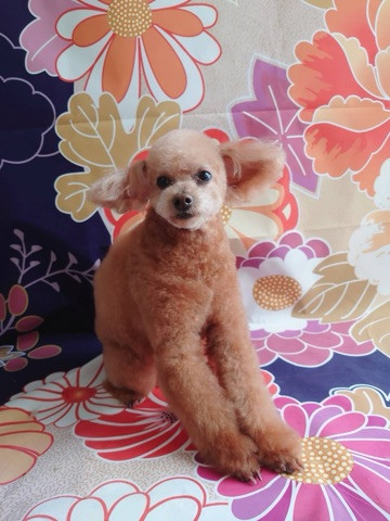 お顔はいつものテディベアカットでスッキリと整えて写真撮影へ
