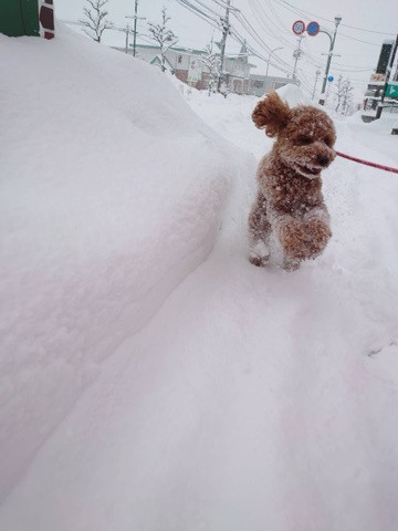 今朝は雪がもっさりと積もってチロルちゃんのテンションは今日も爆上がりのようで、雪の中へダイブしながら楽しくお散歩に行ってこれました