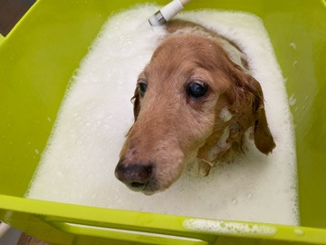 気持ちよくてこの後ゴロンとスタッフの腕を枕にお腹出しながら洗われてたよ