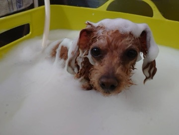 お風呂では薬用のシャンプーで作ったふんわり泡風呂で気持ちよくとっぷりと浸かってくれていました