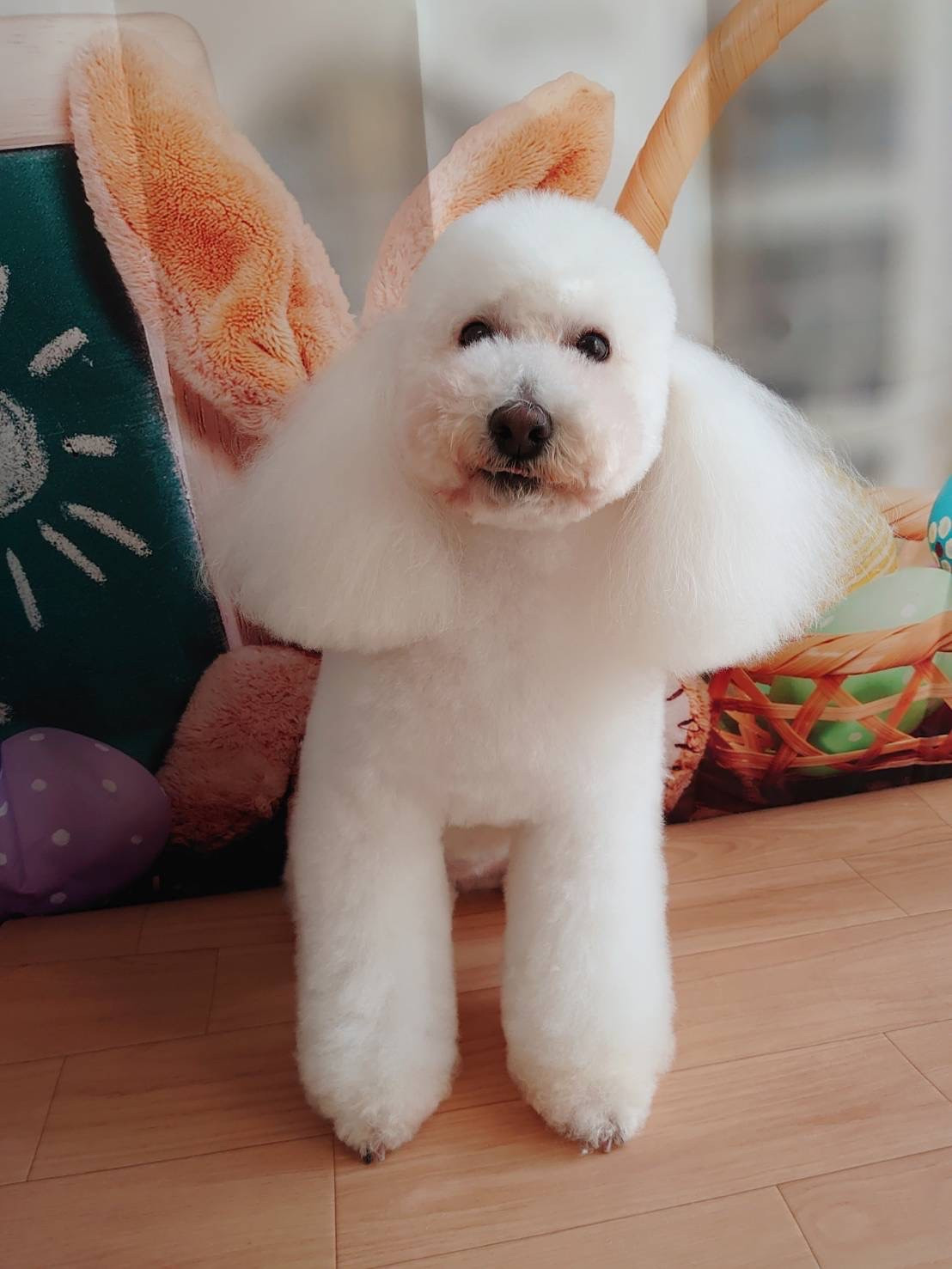 今日もシャンプーして白さに磨きがかかり、綿毛のようにふわふわな仕上がりになりました