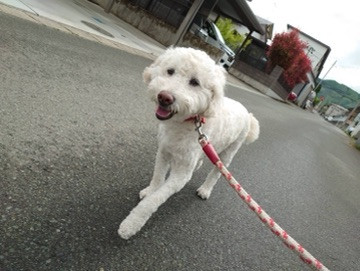 お姉ちゃんの花ちゃんは慣れた様子でお利口さんに待っててくれてお散歩もゆっくりスタッフの歩幅に合わせて歩いてくれていました