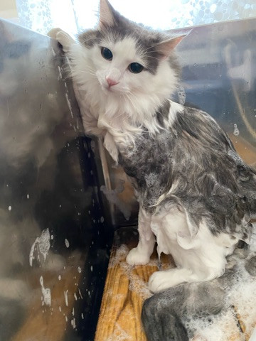 ノルウェージャンのゆずちゃん シャンプーコース お爪切り お耳掃除 足裏のカット