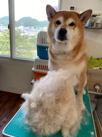 シャンプー前にブラッシングしてごっそり毛を回収してからシュワシュワお風呂に入ったよ