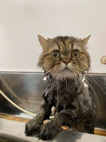 ちょっぴり緊張気味にスタートした作業でしたが、とってもお利口さんに作業され、モコモコだった毛はお風呂に入ってぺったんこになっちゃいました