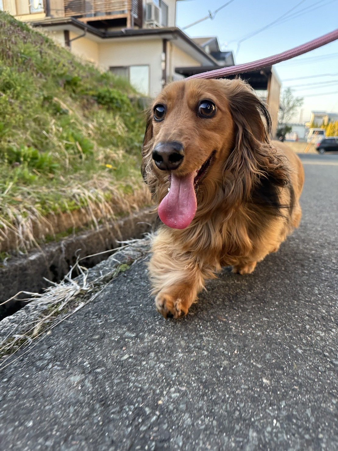 楽しくなっちゃって横っ飛びしながらルンルンお散歩コースを出発