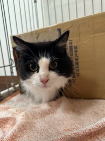 スタッフの姿を発見するとシオンちゃんは今日も下の段の箱へと吸い込まれるように入っていきました