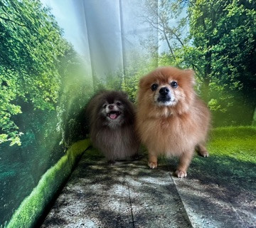 ポメラニアンのくりちゃん&くるちゃん グルーミングコース 部分カット