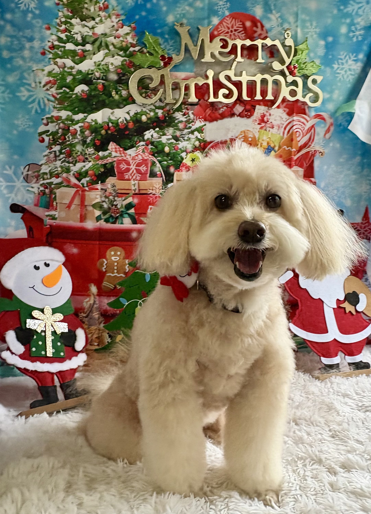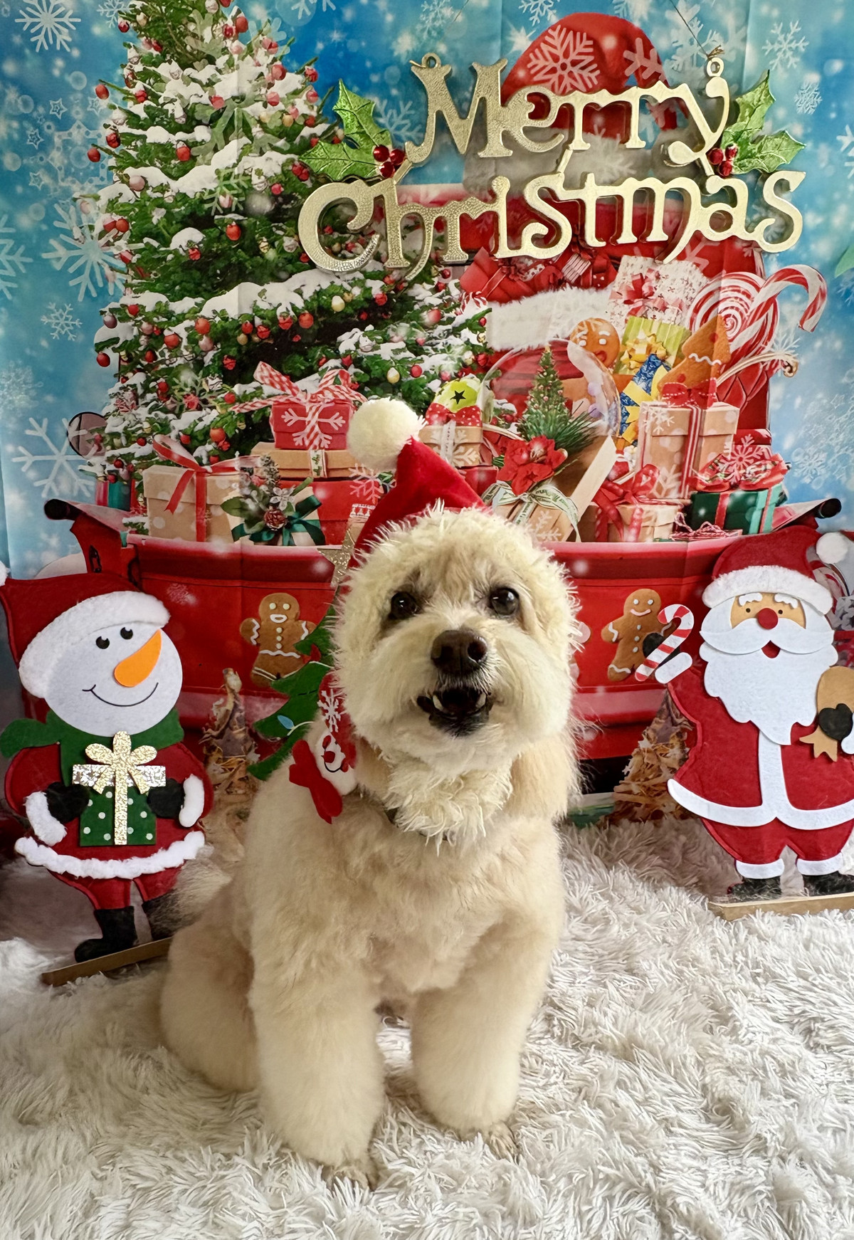 仕上がりのお写真は、今回からのクリスマス背景でパシャリ🎄📸サンタさんの置物や雪だるまに囲まれて、こはくちゃんのふわふわな毛並みがより一層引き立っていました💕とても可愛い一枚になりましたよ✨