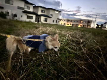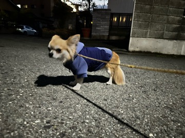 夕方暗くなってからのお散歩になりましたが、お洋服を着て暖かくしてお散歩スタート
