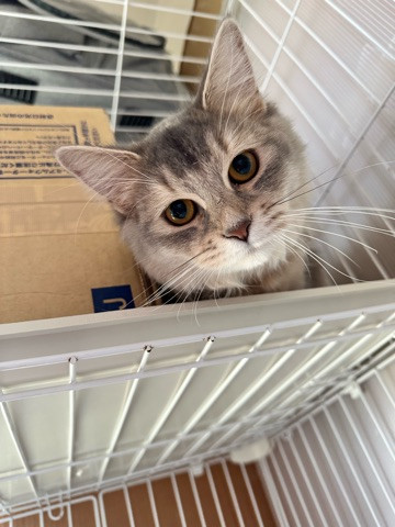 ゴロゴロ喉をならしてくれる場面もありましたが、あまり手がぐわっと来られると怖いようで箱の中に隠れちゃいました