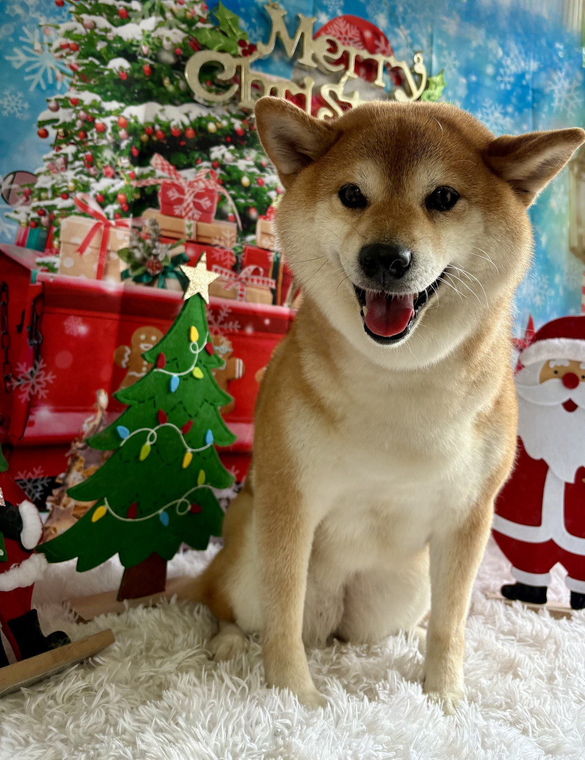 そして今回は クリスマスの背景でパシャリ📸🎄サンタさんの置物や雪だるまに囲まれて、ちょこんと座るももちゃんがとってもキュート❣️穏やかな表情がクリスマスの雰囲気にぴったりでした🎅❄️