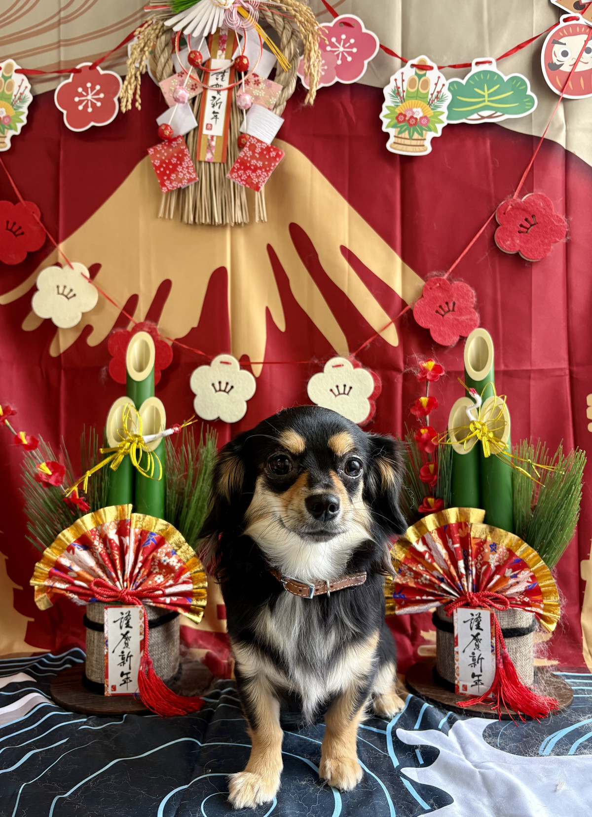 お写真はお正月の背景でパシャリ📸門松や赤富士、梅の飾りに囲まれて、ルルちゃんの可愛さがより一層引き立っています🎍🌸新年らしい、明るく素敵なお写真を撮らせてくれました✨