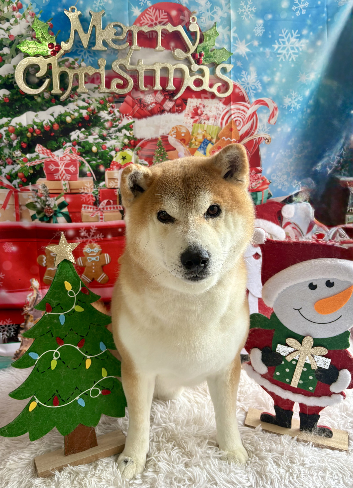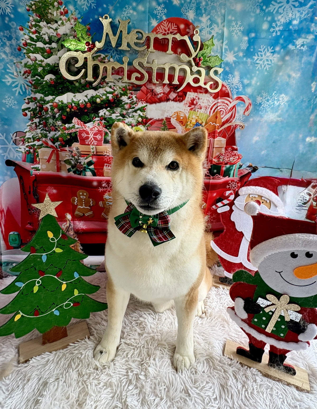 お写真は クリスマス背景 でパシャリ📸🎄サンタの置物や雪だるまに囲まれて、蔵之介ちゃんのキリッとした表情がより引き立って、とっても可愛い一枚になりましたよ✨