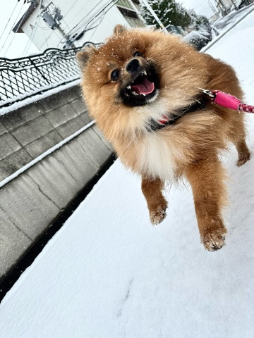 積もった雪にテンション爆上がり中のシャルマンちゃん
