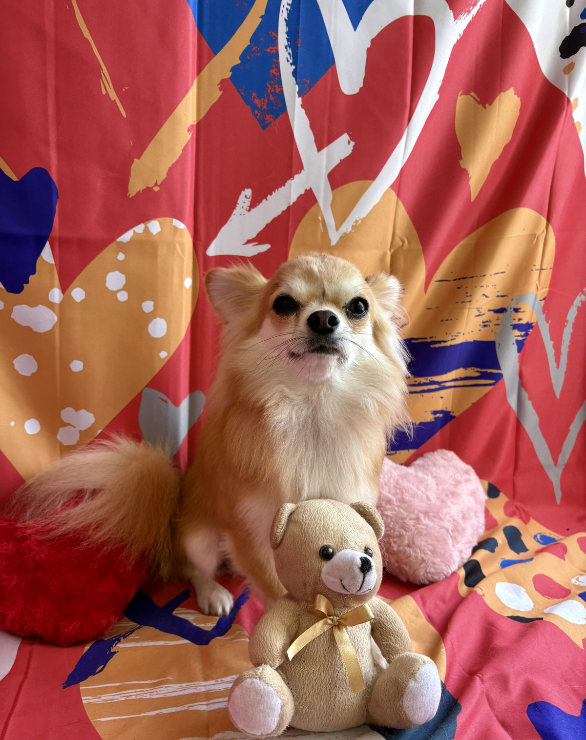 お写真はバレンタイン背景でパシャリ📸🍫ハートいっぱいの背景が、ココちゃんの優しい雰囲気にとてもよく似合っていました💝