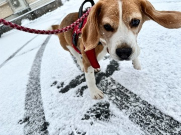今日は雪が積もった中お散歩に出発しましたが、寒さが苦手なけんとちゃん、なかなか距離が稼げず今日もおトイレを済ませるだけのお散歩になってしまいました