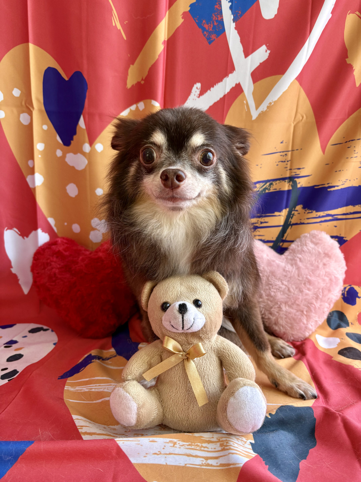 お写真はバレンタイン背景でパシャリ📸🍫ハートや可愛い飾りに囲まれて、ショコラちゃんの優しい雰囲気がとても素敵な一枚になりました💝