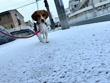 今朝は、道路がツルツル滑る中お散歩に行ってきたよ