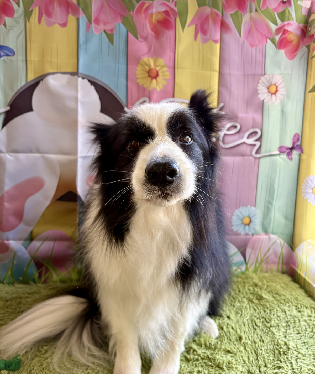 ↑カラフルな背景と、りくちゃん相性ぴったりでした🌈✨️🐾ボーダーコリーのりくちゃん
