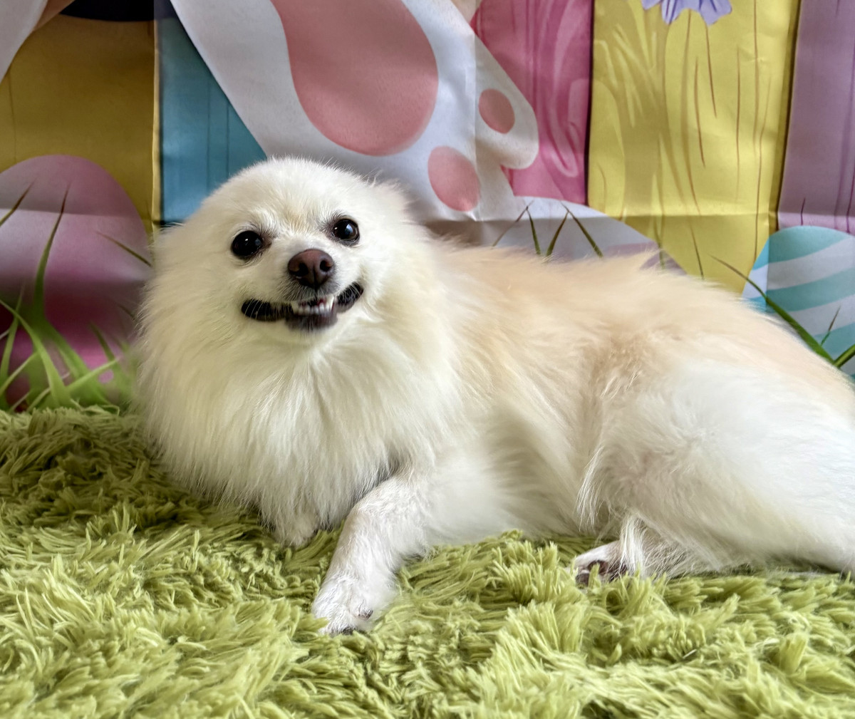 お写真はイースター背景でパシャリ📸🐣たまごや春らしい装飾に囲まれて、ホープちゃんのふんわりした可愛さがより一層引き立つ素敵な一枚になりました🌷