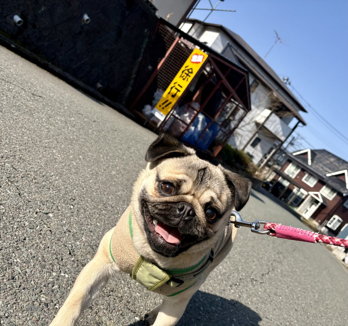 パグのもん吉ちゃんが、お泊まりを元気に継続中です🐶✨