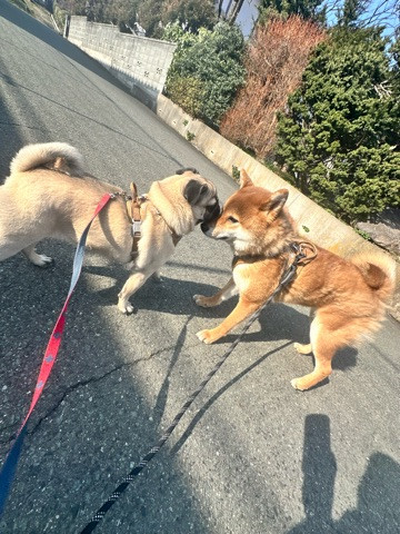 パンちゃんがレオちゃんにちょっかい出してましたが…気持ちを切り替えてお散歩スタート!