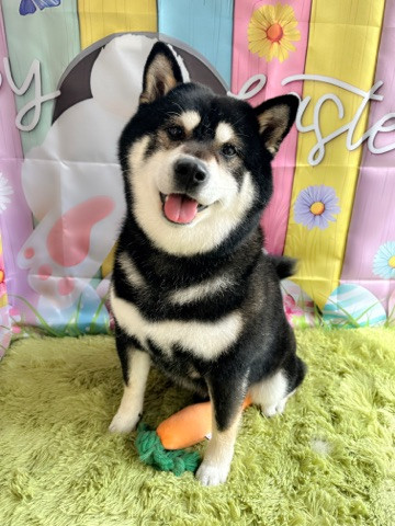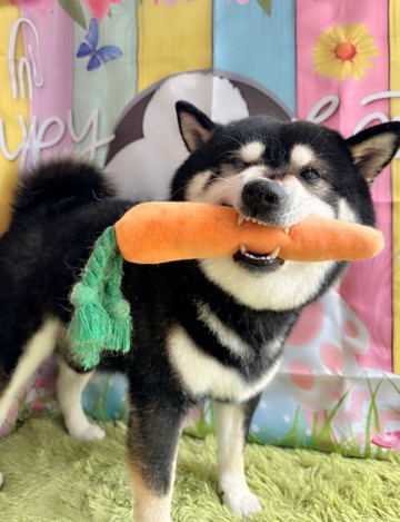撮影時は今月のおもちゃの人参を隠し持ってちょっぴりご満悦の様子