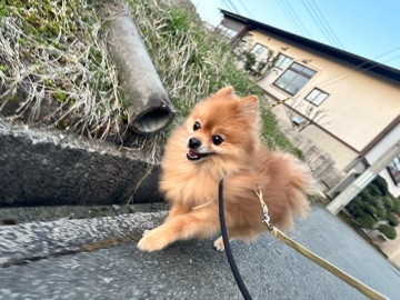 遊ぶのが楽しすぎてハーネスと首輪が外れそうな勢いだったため、急遽1人散歩へ