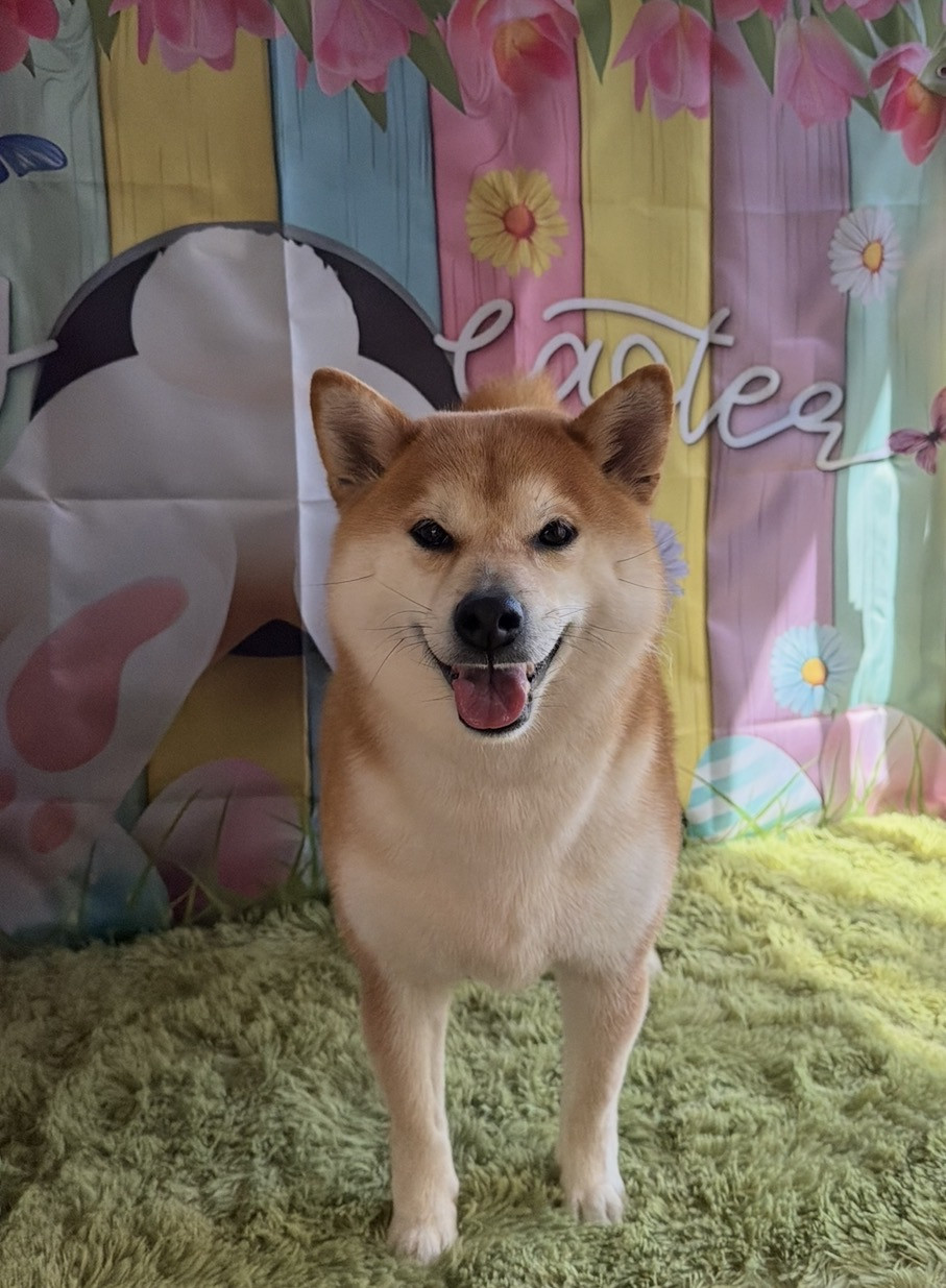 イースター背景でにこにこ〜😆🐰🌷