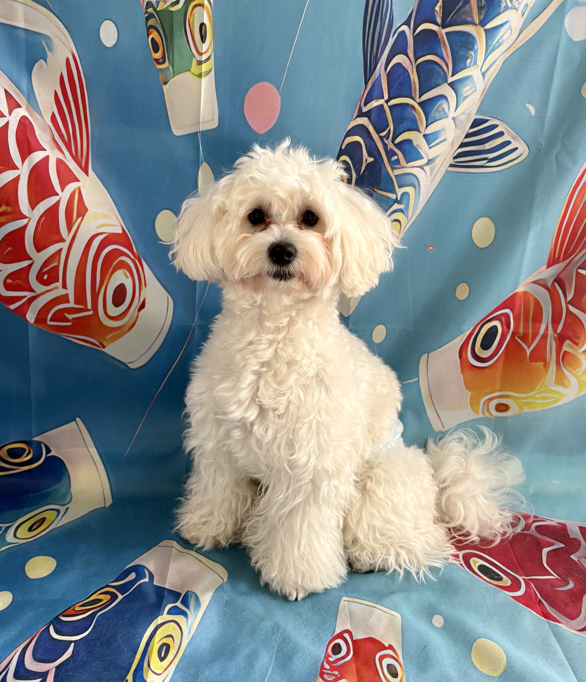 お写真撮影では、青地に鯉のぼりがたくさん飾られた背景の前でパシャリ📸🎏きょとんとした表情がとっても愛らしく、素敵なお写真になりました🌸