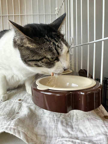 ちゅーるが付いた部分を真っ先に食べてお口の周りに付けながら、残りはマイペースに食べてくれました