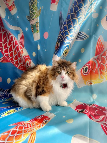 今日から撮影背景が変わって鯉のぼりに囲まれながら可愛くハイチーズ