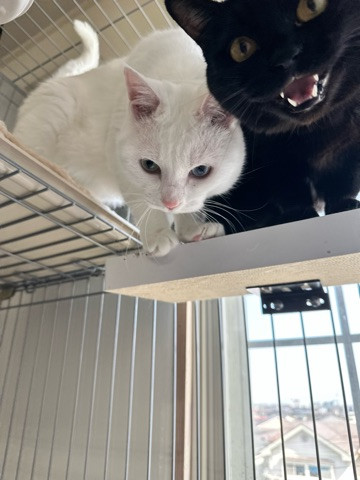 ガサガサとご飯を準備するスタッフに反応してルークちゃん定位置に移動を始め、アリーちゃんはソワソワ催促のニャー